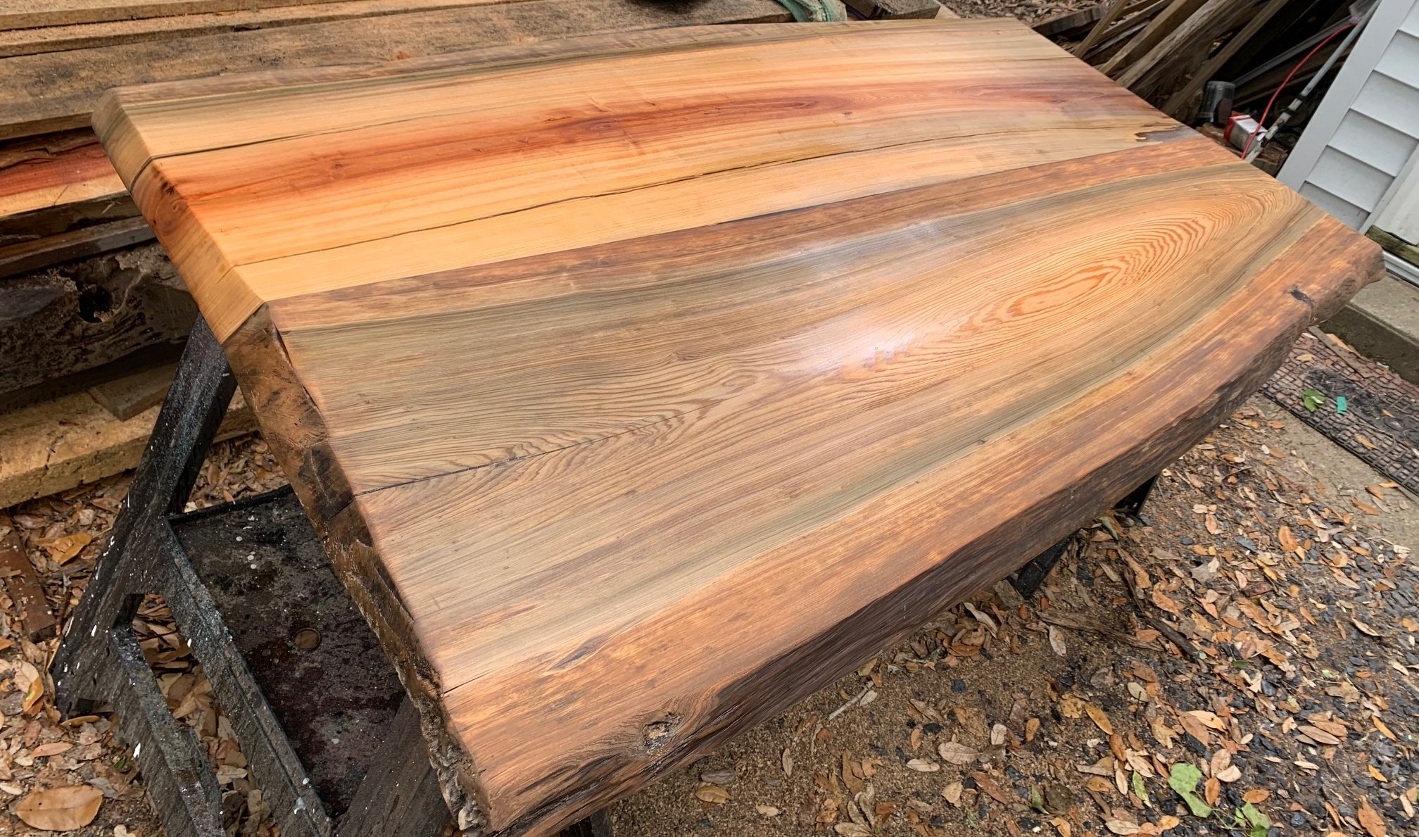 Sinker Cypress, Old-Growth Poplar, Oak and Southern Yellow Pine. All logs are documented with the state, then cut into slabs and dried.